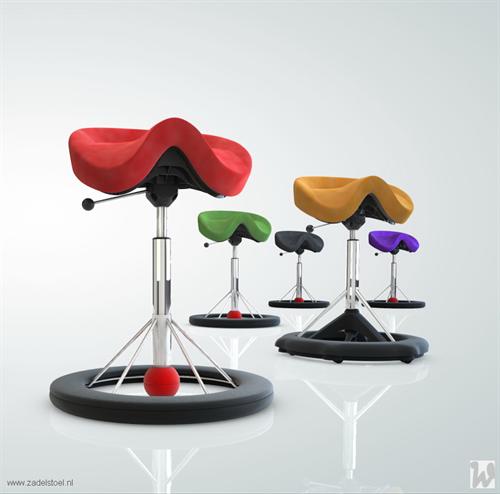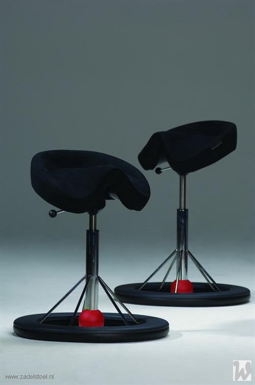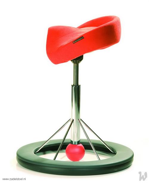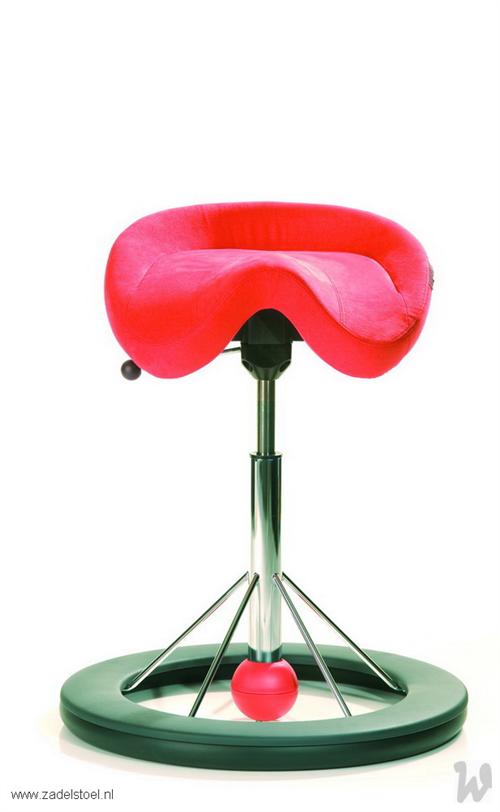 Zadelstoel, met ring en rode bal (standaard) of zwarte bal (meerprijs).