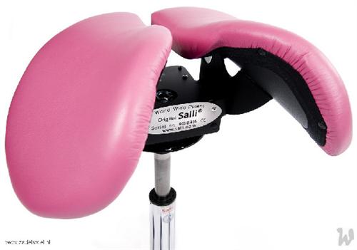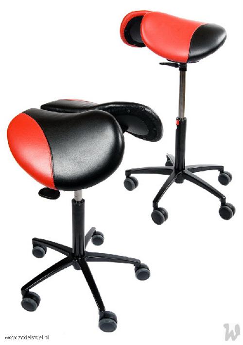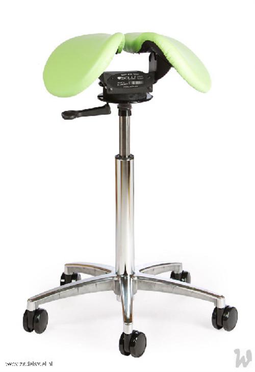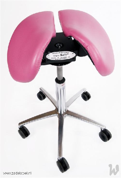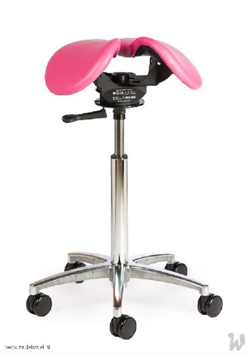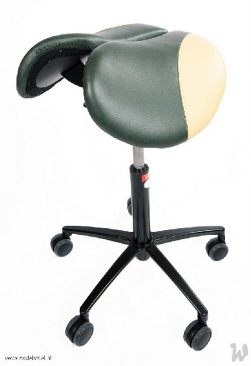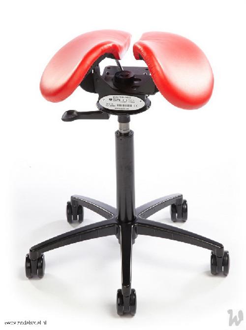 Zadelstoel, op wielen, zadel uit 2 delen, met swing mechaniek, met vaste zithoek
