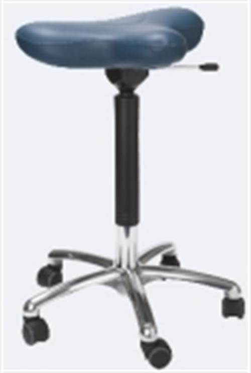 Zadelstoel (driehoekzadel), verrijdbaar, onderstel (D=50cm), vaste zithoek, gaslift hoogteverstelling (H=61-86cm)